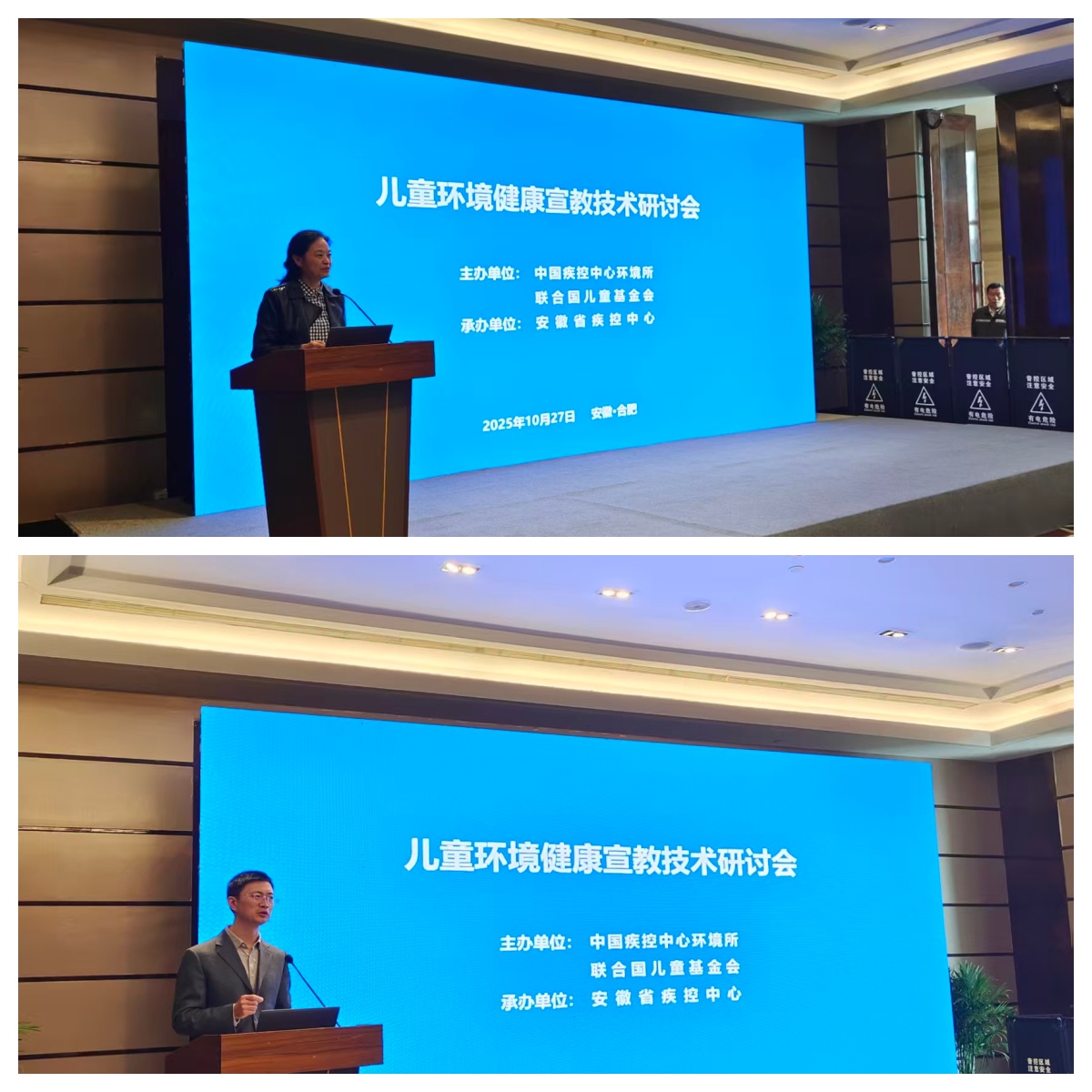 2025年10月27日,由中国疾病预防控制中心环境与健康相关产品安全所(以下简称“中国疾控中心环境所”)与联合国儿童基金会联合主办,安徽省疾病预防控制中心承办的儿童环境健康宣教技术研讨会在安徽省合肥市顺利召开。中国疾控中心环境所所长王林研究员、联合国儿童基金会环境健康项目官员孙辉博士、安徽省疾控局李军调研员、安徽省疾控中心副主任徐庆华主任医师等出席会议,联合国儿童基金会驻华办事处社会行为引导专家Hayon Nam(南贺然)女士应邀做了专题讲座。